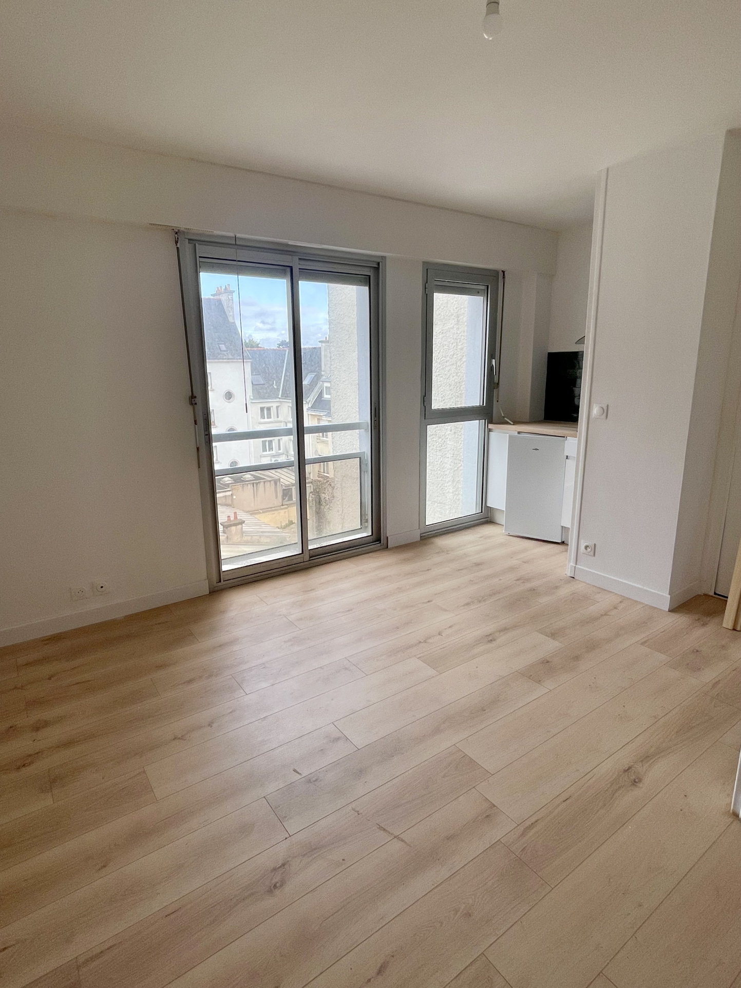Situé dans l'hyper centre de Lorient studio avec ascenceur situé au 5ème étage d'un immeuble des années 1980. Le bien comprend : Une entrée avec placard, une salle de bain avec wc, d'une pièce de vie ainsi qu'une cuisine.